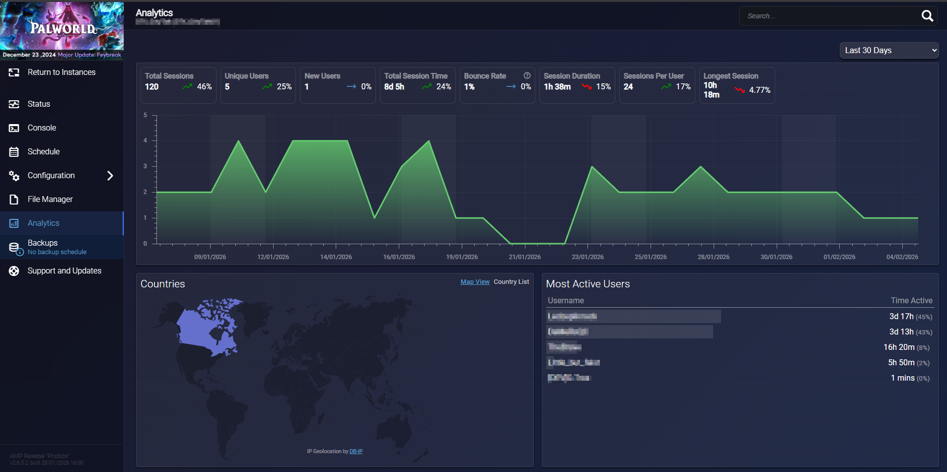 Analytics feature provides detailed insights into player activity, session durations, and server performance. It is part of the functionality available and helps you monitor what’s happening on your game servers.